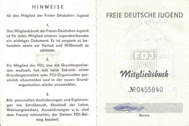 Hier hab ich ein paar Ausschnitte aus dem Außweiß der FDJ ( Freihen Deutschen Jugend) Zurück zur Übersicht