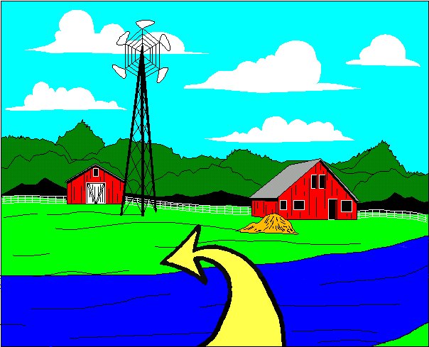 Bauer steht vor einem großen Fluss. Der hat keine Brücke. Auf der